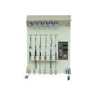 本机适用于一体成型之电源插头线,在成品中抽取6条样品,试验插其插头端之道体连接强度,塑胶被覆强度,扭曲强度,及接地接耐电流等多功能试验,在插头线检查项目中,具有最佳试验引证效果,又本机结构采用电动操作,最具检验公信力,甚受使用者好评。